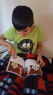 En su opinión, el libro es extremadamente emocionante, diferente y divertido. Lo mejor son los dibujos y el dragón que parece un gatito, aunque el brujo también le mola mucho. Le encanta que esté contada con frases cortas que facilitan la lectura. "Me está gustando, me está gustando mucho", asegura cada vez que terminamos la sesión de lectura. Nunca pierde oportunidad para engatusarme con el fin de que se lo lea yo, pero en ese sentido no ha logrado nada conmigo.