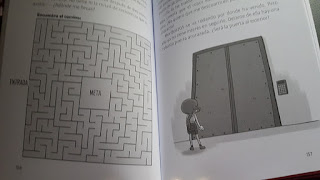 El pequeño, de siete, se lo ojea, mira los dibujos, hace los minijuegos, se lee los sketchs ilustrados, las partes de cómic... Pero está esperando que acabemos el libro que les estoy leyendo ahora por capítulos en la hora del cuento para que empiece con este. ¡Vago! En fin, la culpa es mía porque me encantan estas sesiones de lectura en familia (Yo leo, ellos escuchan, interrumpen, preguntan, comentan...).